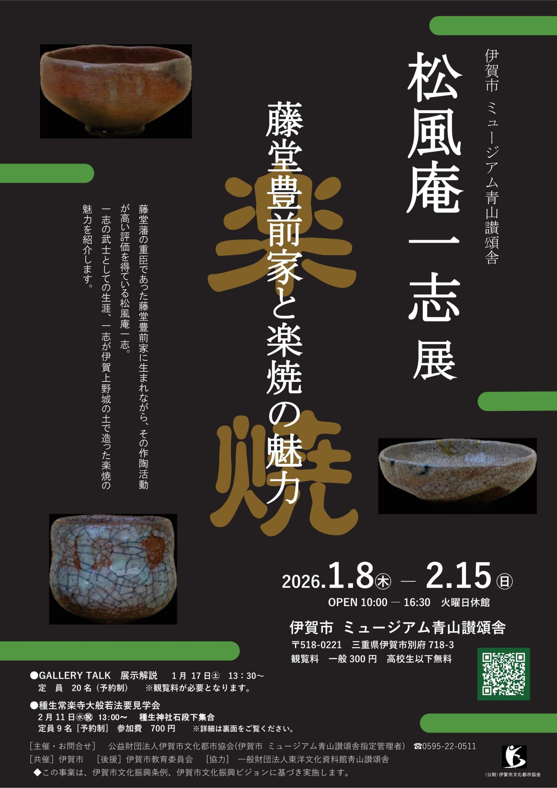 伊賀市 ミュージアム青山讃頌舎 「松風庵一志展 ―藤堂豊前家と楽焼の魅力―」