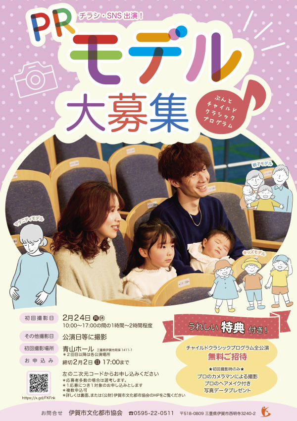ぶんとでは「わんぱくキッズのクラシック探検隊」「2歳になるまでのクラシック」などのクラシック公演や、「ぶんとキッズ・アカデミー」などのアートに触れるイベントなど、子どもたちが楽しみながら感性を磨くことができるプログラムを多数開催しています。より多くのお子さまにこのプログラムを体験していただけるよう、PRにご協力いただけるモデルを募集します!