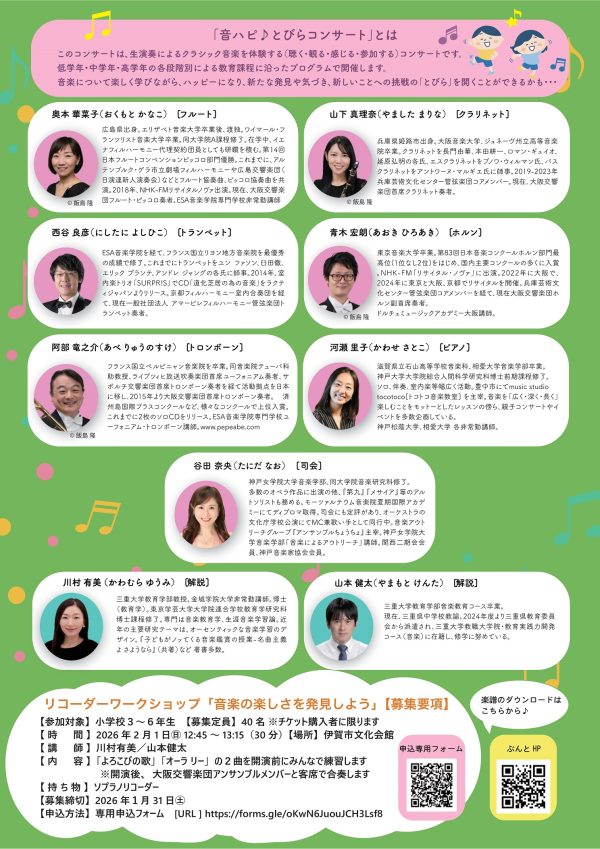 ★リコーダーワークショップ「音楽の楽しさを発見しよう」参加者募集★