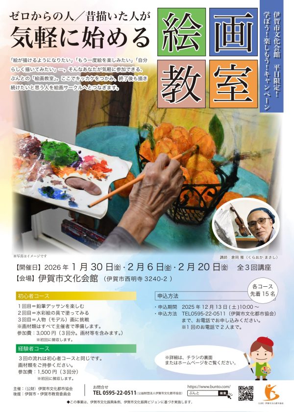 伊賀市文化会館 平日限定!学ぼう!楽しもう!キャンペーン 気軽に始める絵画教室