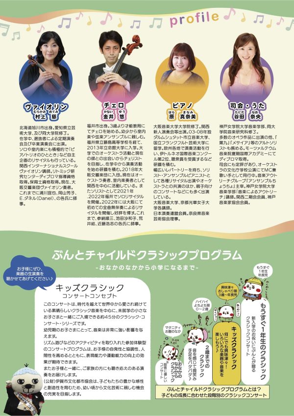 ◆このコンサートは、子どもたちにより良い音楽の提供を目指して、専門知識を有する三重大学との地域連携事業として企画・開催します。