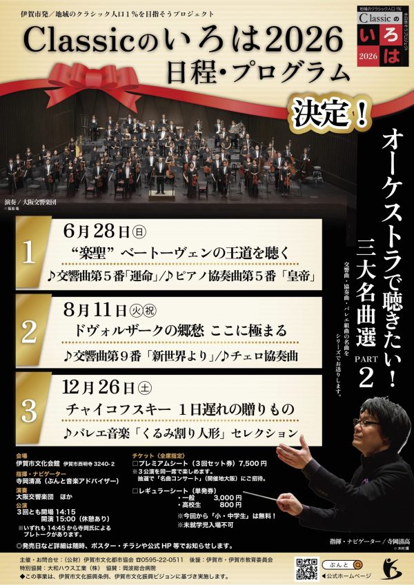 ぶんとが2015年以降、初心者から楽しめるクラシックコンサートとして伊賀市文化会館で開催している「クラシックのいろは」。