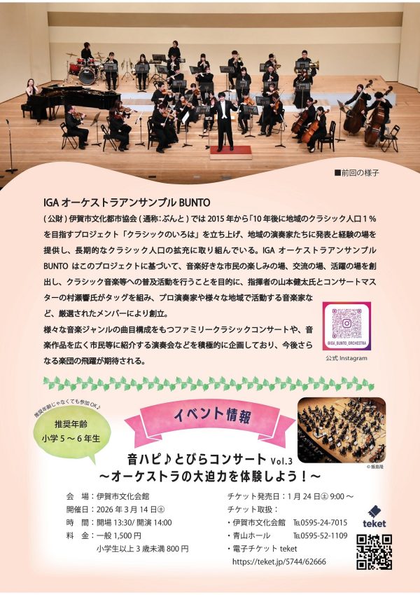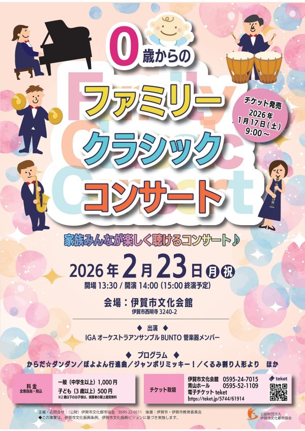 [主催・お問合せ] (公財)伊賀市文化都市協会 ☎0595-22-0511