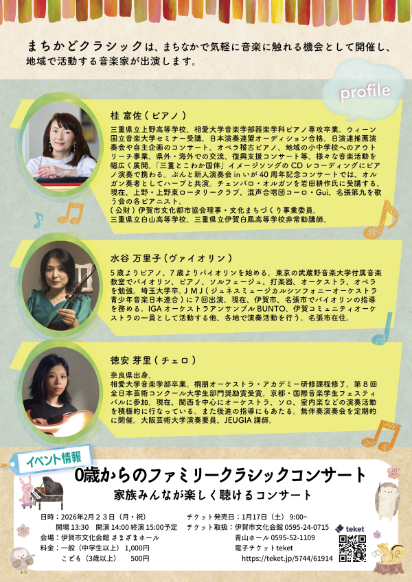 [主催・お問合せ] (公財)伊賀市文化都市協会 ☎0595-22-0511